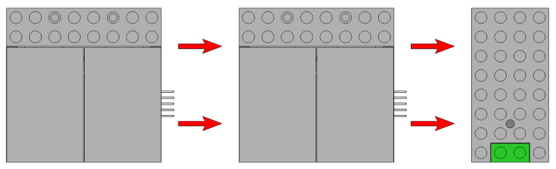 The base of the control buttons is fully anti-studded to make it easy to integrate them into your LEGO® set-up. They are 8 studs wide, 8 studs deep and 5 plates high. More detailed information on the capabilities of these light control buttons can be found in the instruction manual.
