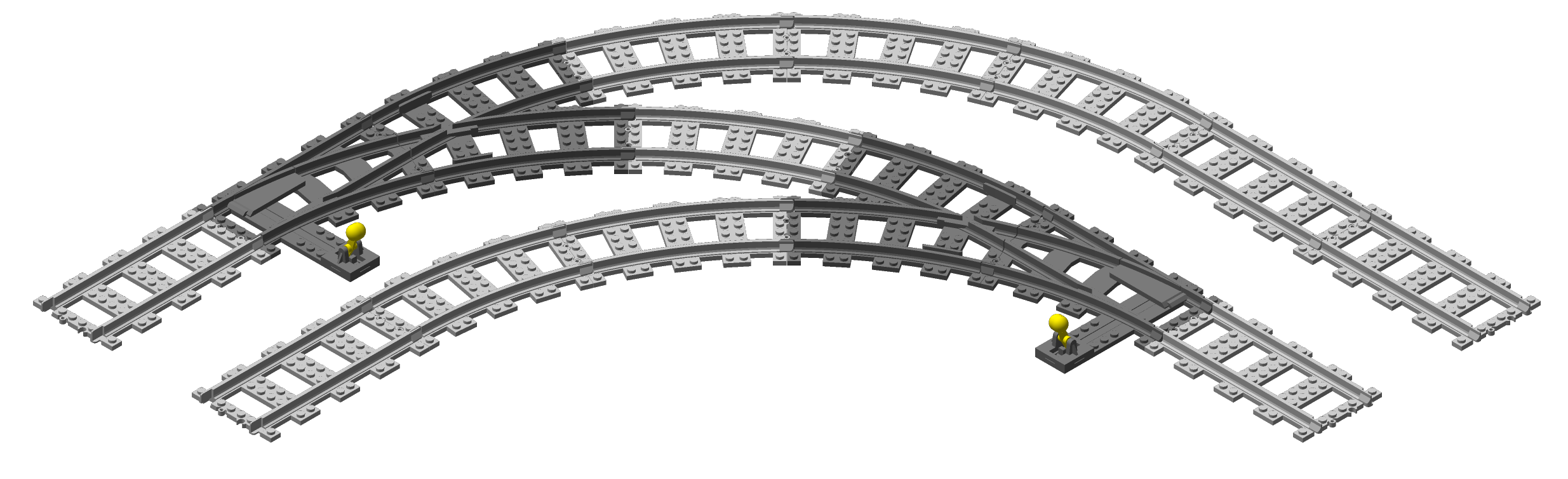 These are our curved switches for RC/PF LEGO® train tracks.